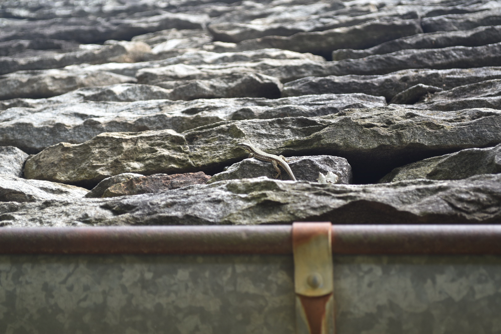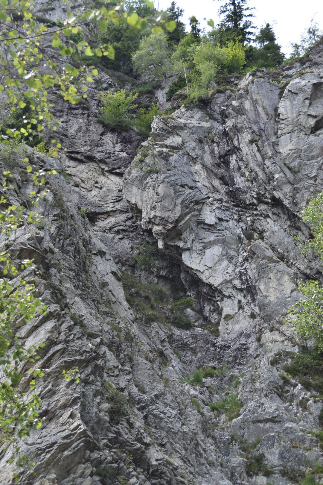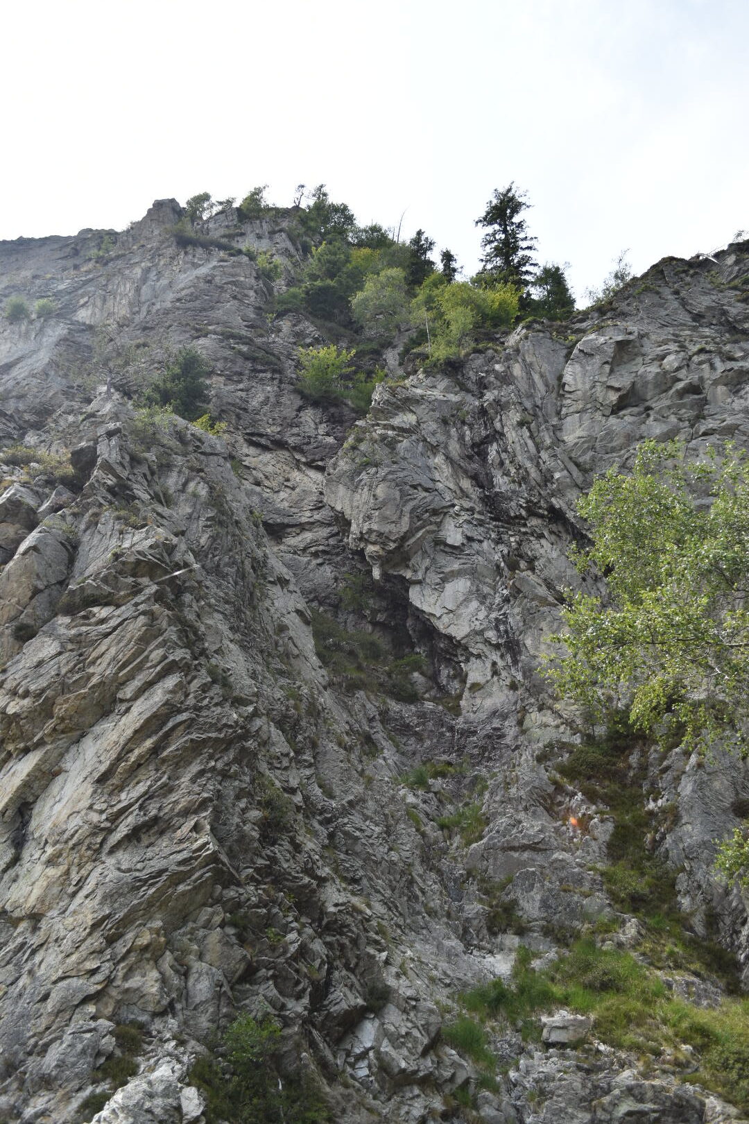 Excited of what we have seen so far, we totally forgot to fill our water bottle with water. Out on the trail again, our focus were pulled towards a leaf hanging in the air as if it was frozen in time. Unfortunately it was just a spider decorating its web and not a leaf stuck in time. From here on the trail became very steep and in some places we almost had to climb. After an hour of almost climbing in the sun we were very thirsty, but we didn’t have any water. Luckily we found a little stream of water flowing down the rocks. In the Swiss Italian Alpes the water flowing down the mountain is drinkable and also nice and cold. From where we were standing it was not really possible to get to the water, so i had to climb a bit further op the stream in order to harvest some of the water. I used a stone as a spout to redirect the water into the bottle and all though it did take some time, we eventually got hydrated. As we walked 2 minutes further up, we found a bigger stream, much more approachable and easier to harvest.