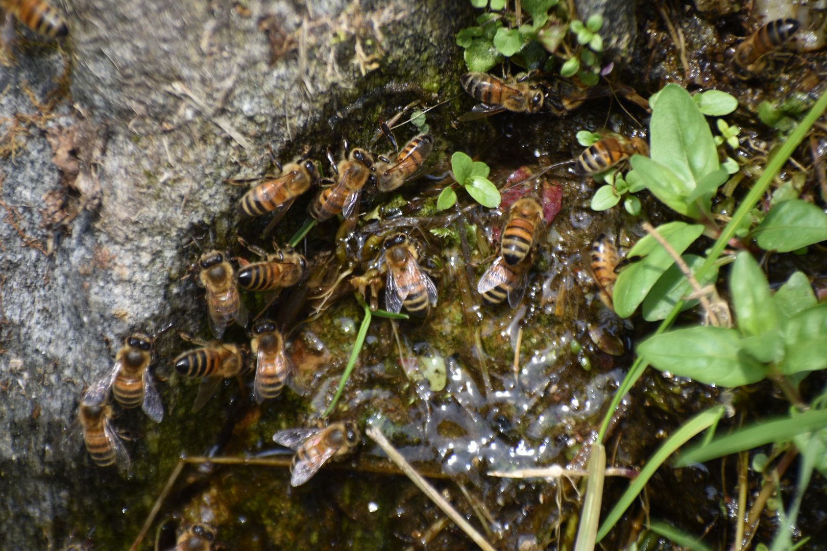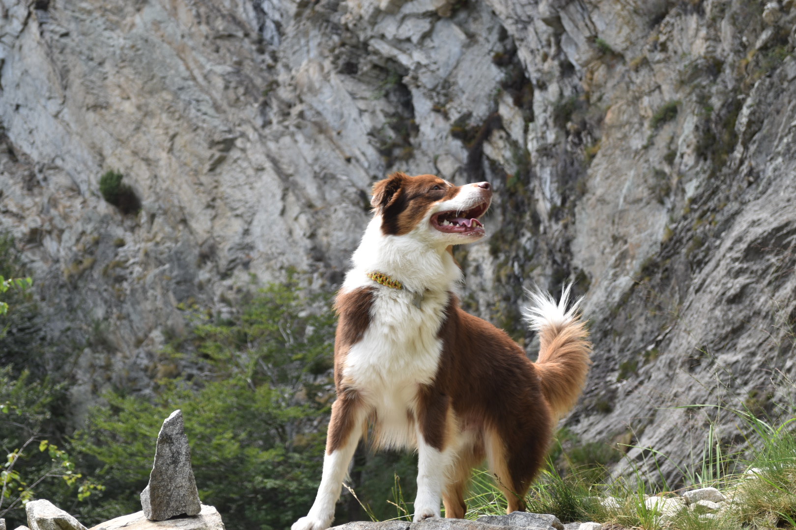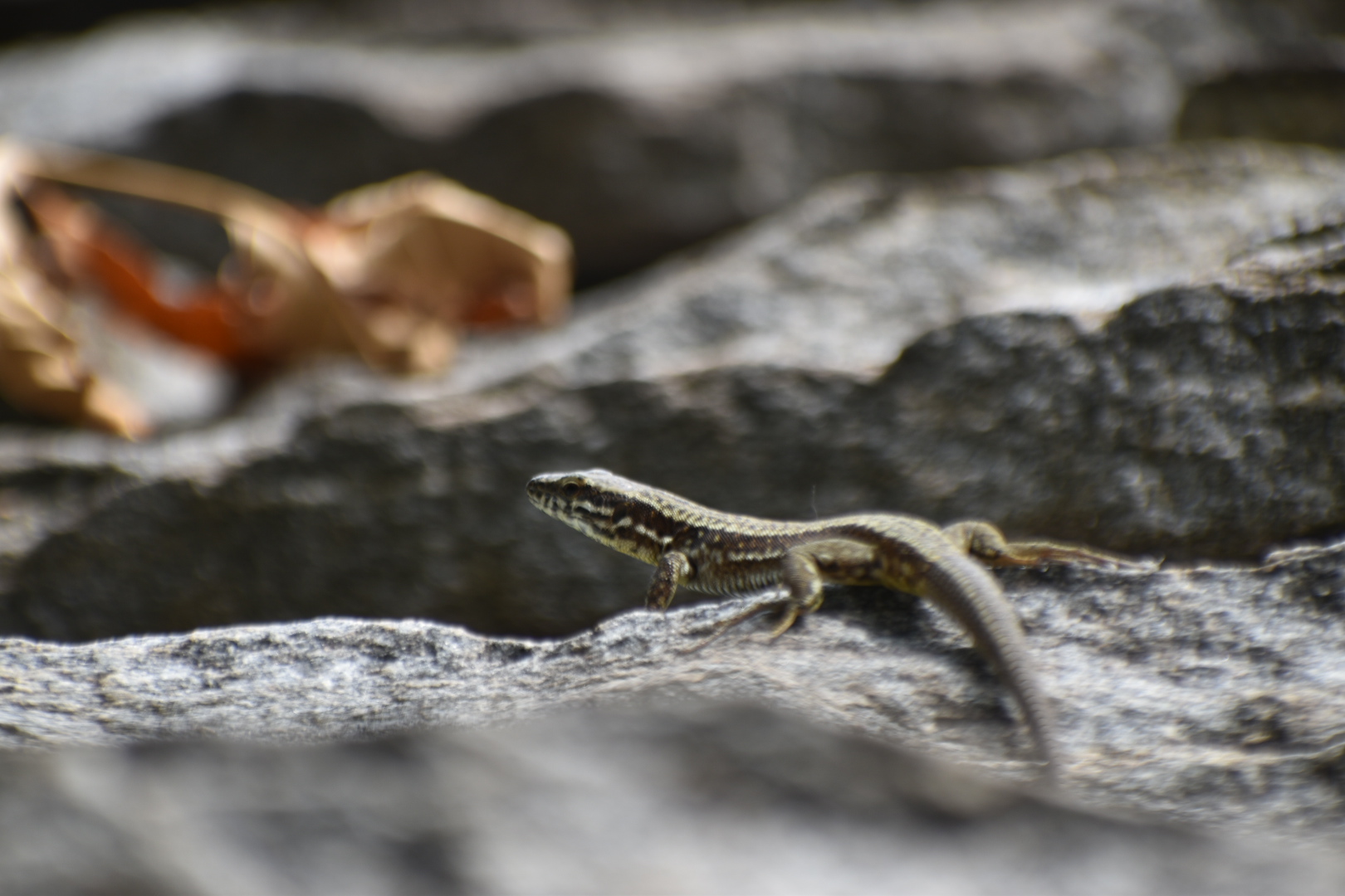 Excited of what we have seen so far, we totally forgot to fill our water bottle with water. Out on the trail again, our focus were pulled towards a leaf hanging in the air as if it was frozen in time. Unfortunately it was just a spider decorating its web and not a leaf stuck in time. From here on the trail became very steep and in some places we almost had to climb. After an hour of almost climbing in the sun we were very thirsty, but we didn’t have any water. Luckily we found a little stream of water flowing down the rocks. In the Swiss Italian Alpes the water flowing down the mountain is drinkable and also nice and cold. From where we were standing it was not really possible to get to the water, so i had to climb a bit further op the stream in order to harvest some of the water. I used a stone as a spout to redirect the water into the bottle and all though it did take some time, we eventually got hydrated. As we walked 2 minutes further up, we found a bigger stream, much more approachable and easier to harvest.